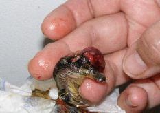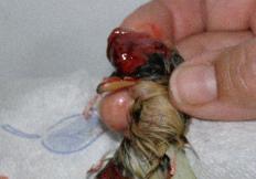duckling’s large crest-hole. The second photo shows the same call duckling