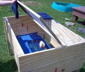 stapled to it. The floor is covered with rubber shelf liner. As the ducklings